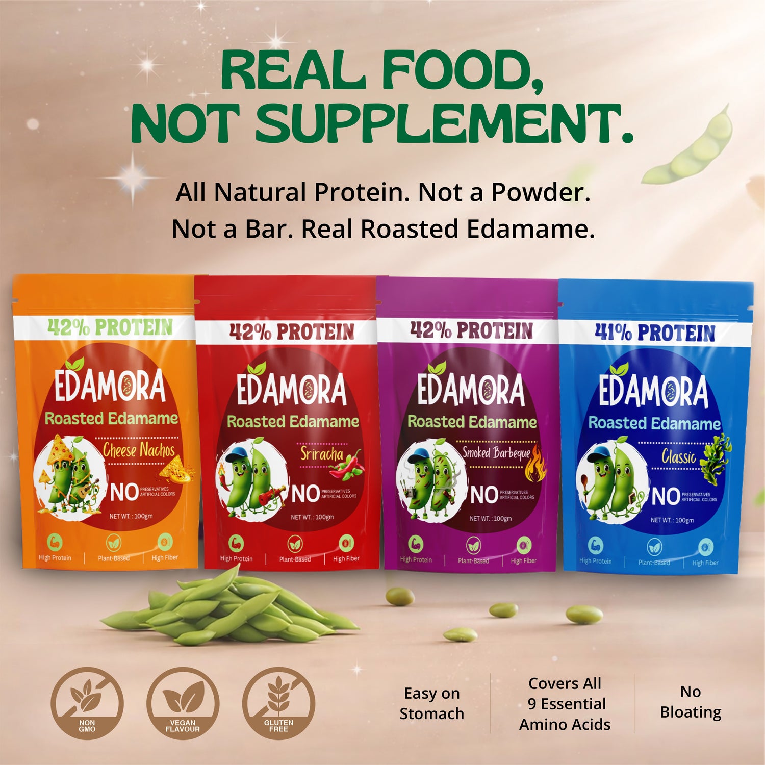 Slow-roasted edamame, thoughtfully seasoned, and packed to support daily nutrition —